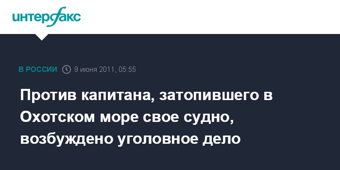 Против капитана, затопившего в Охотском море свое судно, возбуждено уголовное дело