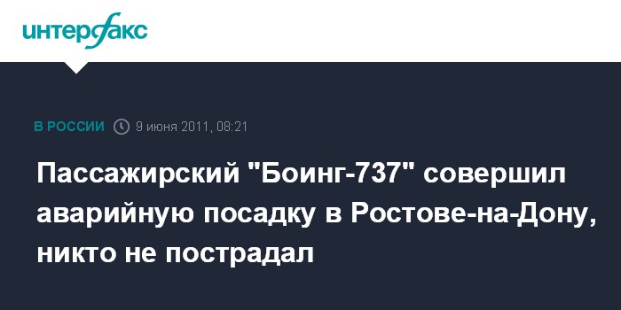 Ростов-на-Дону. 9 июня. ИНТЕРФАКС-ЮГ - "Боинг-737" с 58-ю пассажирами на борту и семью членами экипажа совершил аварийную посадку в 07:02 мск четверга в аэропорту Ростова-на-Дону, сообщила в четверг агентству "Интерфакс-Юг" представитель авиакомпании "Донавиа" Инна Чурляева.
