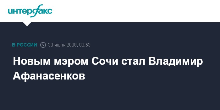 "Новым мэром Сочи стал Владимир Афанасенков, он набрал 85,1% голосов," - сообщил председатель муниципальной избирательной комиссии Сочи Юрий Рыков. На втором месте депутат от КПРФ Юрий Дзагания (12,18%), на третьем - самовыдвиженец Виктор Кузьминов (1,95%), четвертый результат у Ивана Мокану (0,77%).