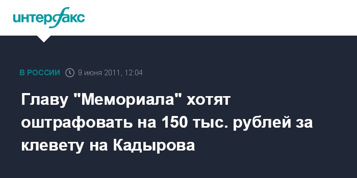 Главу "Мемориала" хотят оштрафовать на 150 тыс. рублей за клевету на Кадырова