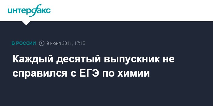 Москва. 9 июня. INTERFAX.RU - Минимальный порог ЕГЭ по химии не преодолела почти десятая часть выпускников, сообщает Рособрнадзор.