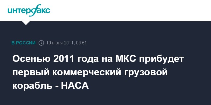 Осенью 2011 года на МКС прибудет первый коммерческий грузовой корабль - НАСА