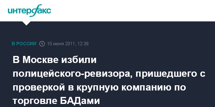 Москва. 10 июня. INTERFAX.RU - Неизвестные избили сотрудника полиции во время проверки крупной сетевой компании, торгующей БАДами, и уничтожили часть документов, сообщил "Интерфаксу" источник в правоохранительных органах в пятницу.