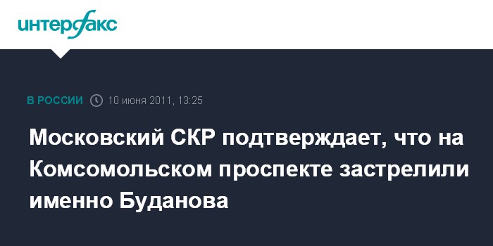 Москва. 10 июня. INTERFAX.RU - Официальный представитель главного следственного управления СК РФ по Москве Виктория Цыпленкова подтвердила факт убийства в российской столице полковника Юрия Буданова.
