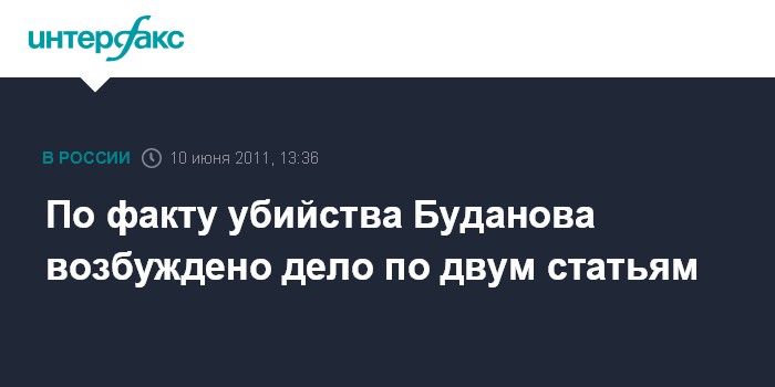 "По факту убийства Буданова возбуждено уголовное дело по ст. 105 УК РФ (убийство) и ст. 222 УК РФ (незаконный оборот оружия)", - сказал Маркин "Интерфаксу" в пятницу.