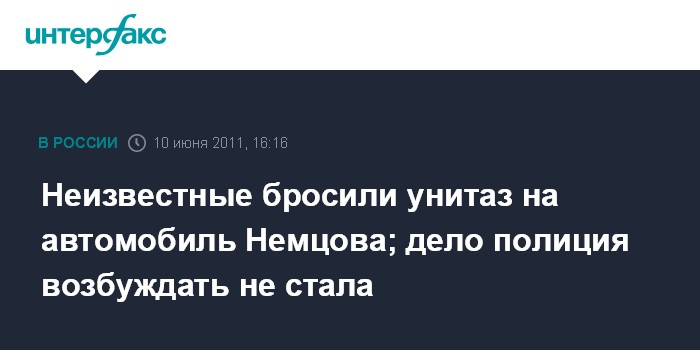 Неизвестные бросили унитаз на автомобиль Немцова; дело полиция возбуждать не стала