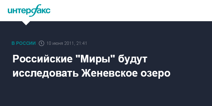 Женева. 10 июня. INTERFAX.RU - Российские глубоководные аппараты "Мир-"1 и "Мир-2" примут участие в экспедиции по исследованию Женевского озера, пишет в пятницу швейцарская газета "Тан".