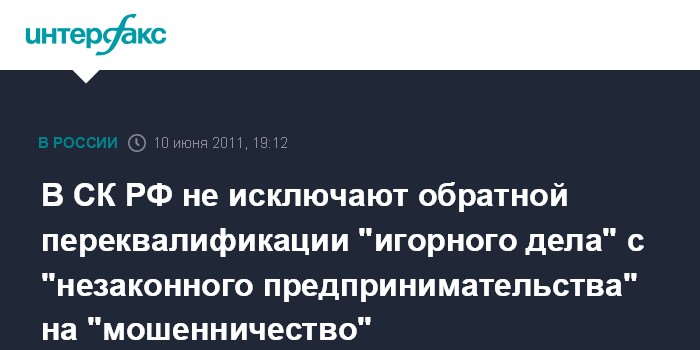 В СК РФ не исключают обратной переквалификации "игорного дела" с "незаконного предпринимательства" на "мошенничество"