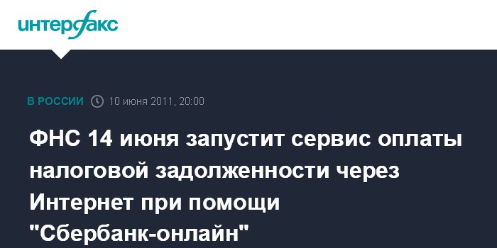 ФНС 14 июня запустит сервис оплаты налоговой задолженности через Интернет при помощи "Сбербанк-онлайн"