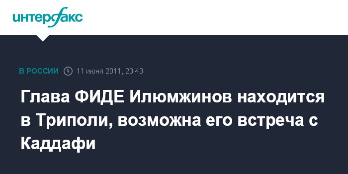 Глава ФИДЕ Илюмжинов находится в Триполи, возможна его встреча с Каддафи