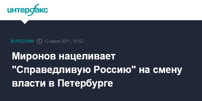 Миронов нацеливает "Справедливую Россию" на смену власти в Петербурге