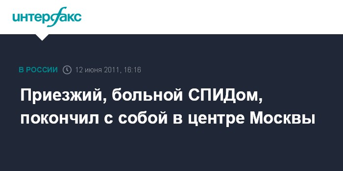 Приезжий, больной СПИДом, покончил с собой в центре Москвы