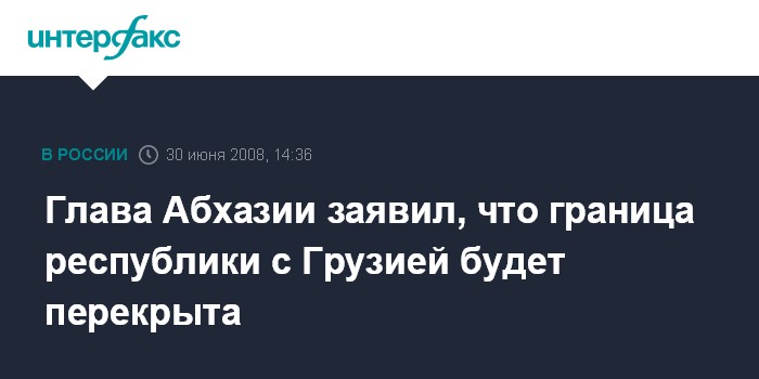 Москва. 30 июня. INTERFAX.RU - Президент Абхазии Сергей Багапш сообщил о намерении властей республики полностью перекрыть границу с Грузией. "Граница с Грузией со вторника будет перекрыта, и будут прекращены любые передвижения через реку Ингури", - заявил он журналистам журналистам в Сухуми.