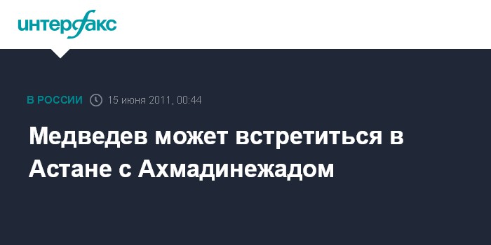 Москва. 15 июня. ИНТЕРФАКС - Президент РФ Дмитрий Медведев, возможно, проведет встречу с президентом Ирана Махмудом Ахмадинежадом "на полях" саммита Шанхайской организации сотрудничества (ШОС).