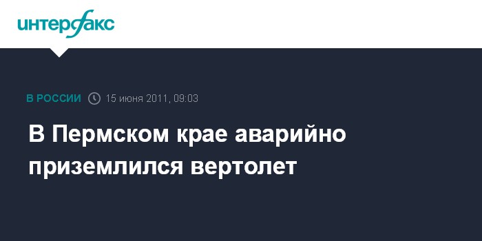 Пермь. 15 июня. INTERFAX.RU - В Чайковском районе Пермского края вертолет Ми-8, на борту которого находилось 5 человек, совершил аварийную посадку в лесном массиве.