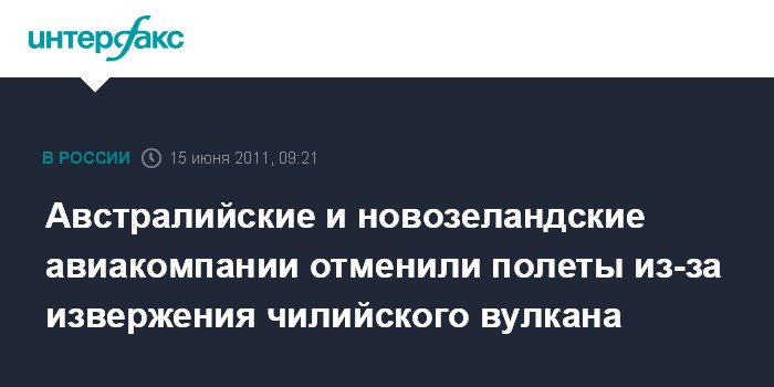 Сидней. 15 июня. INTERFAX.RU - Руководители работающих в Австралии и Новой Зеландии авиакомпаний уже в четвертый день подряд вынуждены отменять авиарейсы из-за добравшегося до этих стран из Чили облака вулканического пепла, передает в среду агентство EFE.