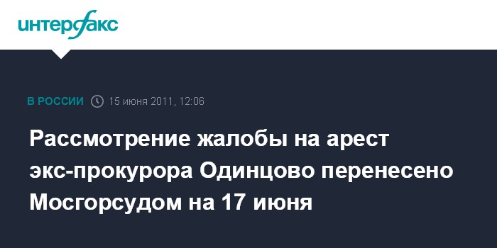 Рассмотрение жалобы на арест экс-прокурора Одинцово перенесено Мосгорсудом на 17 июня