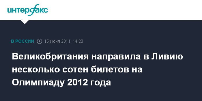 Лондон. 15 июня. INTERFAX.RU - Олимпийский комитет Великобритании выделил Ливии несколько сотен билетов на Олимпийские игры в Лондоне 2012 года, сообщает в среду британская газета "Индепендент".