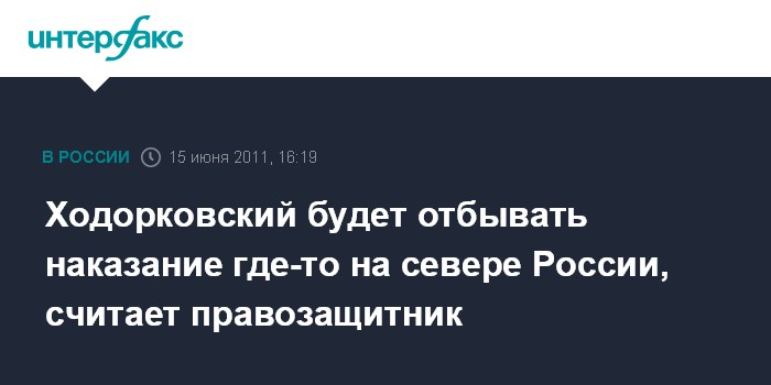 Ходорковский будет отбывать наказание где-то на севере России, считает правозащитник