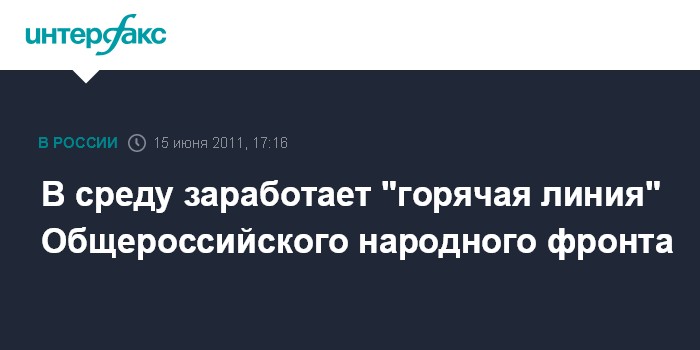 В среду заработает "горячая линия" Общероссийского народного фронта