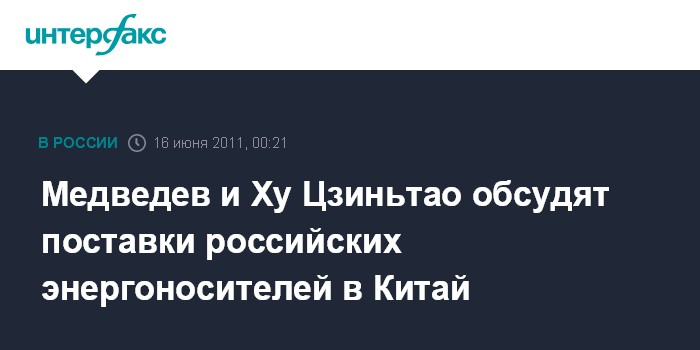 Медведев и Ху Цзиньтао обсудят поставки российских энергоносителей в Китай