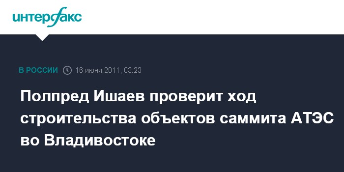 Полпред Ишаев проверит ход строительства объектов саммита АТЭС во Владивостоке