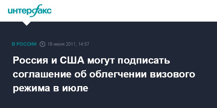 Санкт-Петербург. 16 июня. INTERFAX.RU - Россия и США в ближайшее время подпишут соглашение об облегчении визового режима для поездок в обе страны.