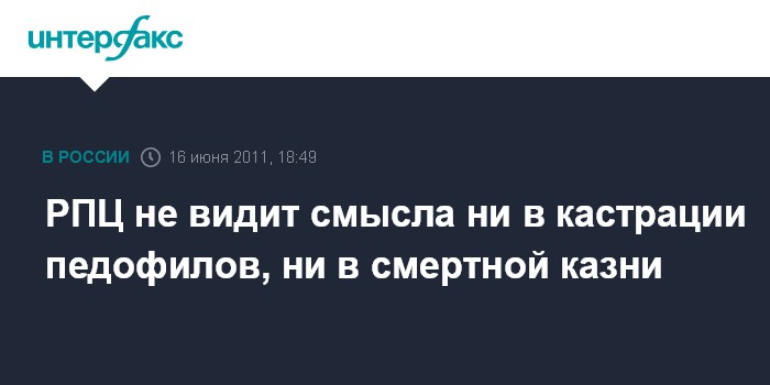 РПЦ не видит смысла ни в кастрации педофилов, ни в смертной казни