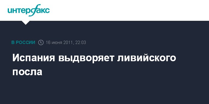 Мадрид. 16 июня. INTERFAX.RU - Испания выдворяет из Мадрида посла Ливии и еще троих сотрудников посольства за деятельность, несовместимую с дипломатическим статусом.
