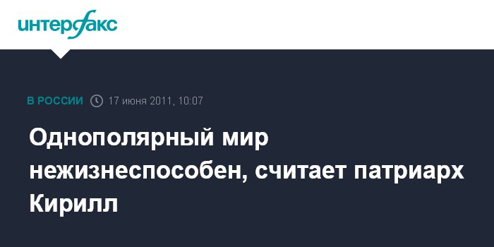 Москва. 17 июня. INTERFAX.RU - Патриарх Московский и всея Руси Кирилл поддерживает идею многополярного мира и призывает к тому, чтобы Россия стала одним из его полюсов.