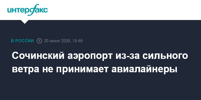 Москва. 30 июня. INTERFAX.RU - Сильный ветер стал причиной отправки на запасные аэродромы шести пассажирских авиалайнеров с аэропорта "Адлер" (Сочи). "На этот час скорость ветра составляет восемь метров в секунду, порывы до 13 м в секунду. В связи с тем, что ветер мешает производить посадку пассажирских авиалайнеров, шесть рейсов уже отправлены на запасные аэродромы", - сообщили в понедельник агентству "Интерфакс" в администрации аэропорта.