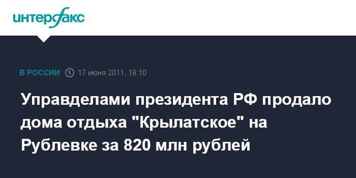 Управделами президента РФ продало дома отдыха "Крылатское" на Рублевке за 820 млн рублей