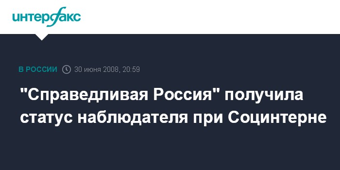 Москва. 30 июня. ИНТЕРФАКС - Партия "Справедливая Россия", возглавляемая спикером Совета Федерации Сергеем Мироновым, принята в Социнтерн в качестве наблюдателя.