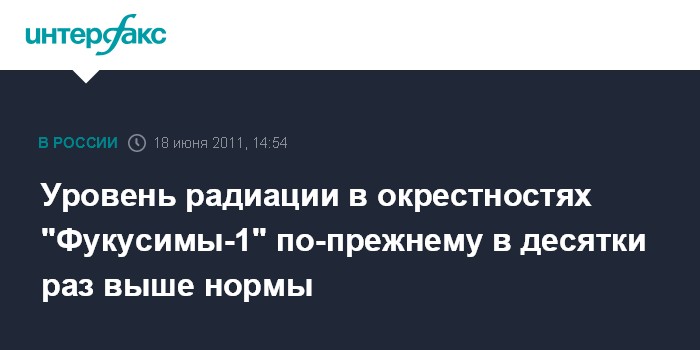 Токио. 18 июня. INTERFAX.RU - Радиационный фон в японской префектуре Фукусима, где расположена аварийная АЭС, превышает предельно допустимый уровень от 2 до 34 раз.