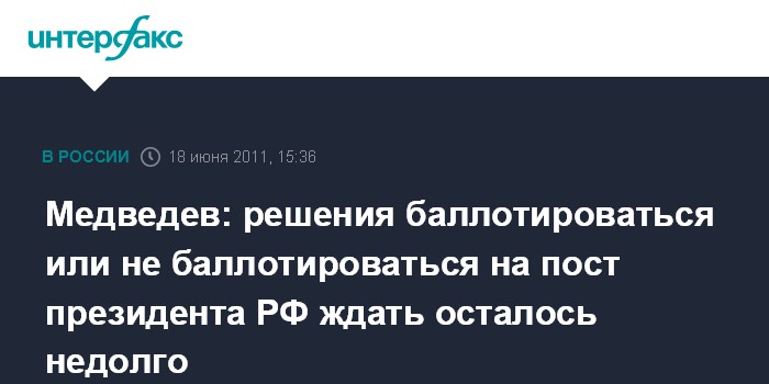Санкт-Петербург. 18 июня. INTERFAX.RU - Президент РФ Дмитрий Медведев заявил, что объявит о своем решении баллотироваться ли вновь на пост президента РФ, уже в скором времени и предлагает сохранить интригу.