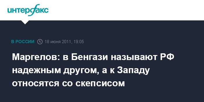 Маргелов: в Бенгази называют РФ надежным другом, а к Западу относятся со скепсисом