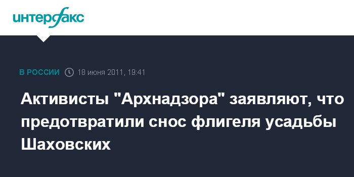 Активисты "Архнадзора" заявляют, что предотвратили снос флигеля усадьбы Шаховских