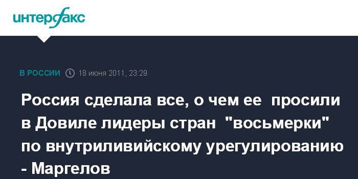 Россия сделала все, о чем ее просили в Довиле лидеры стран "восьмерки" по внутриливийскому урегулированию - Маргелов