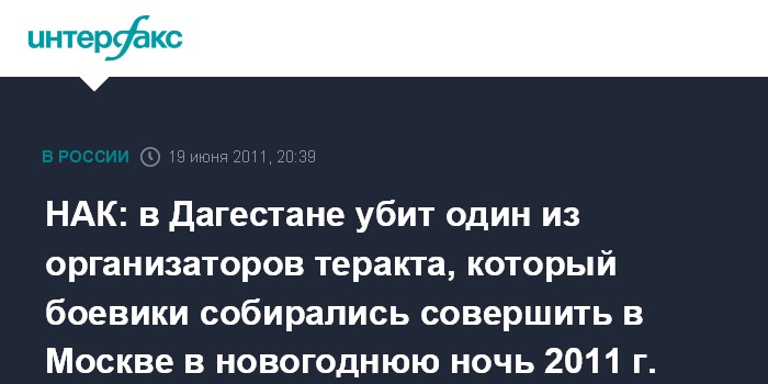 НАК: в Дагестане убит один из организаторов теракта, который боевики собирались совершить в Москве в новогоднюю ночь 2011 г.