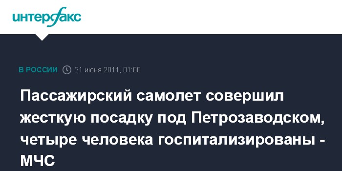 Пассажирский самолет совершил жесткую посадку под Петрозаводском, четыре человека госпитализированы - МЧС