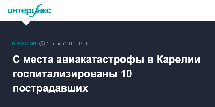 Как сообщил "Интерфаксу" представитель прокуратуры Карелии, находящийся на месте аварии, самолет сильно разрушен, был сильный пожар. По словам представителя прокуратуры, была озвучена информация о 10 госпитализированных пострадавших, однако эти данные уточняются, поскольку людей доставляли с места катастрофы в две больницы - республиканскую городскую больницу Петрозаводска.