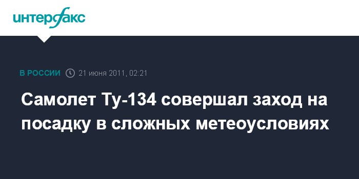 Москва. 21 июня. INTERFAX.RU - Потерпевший катастрофу под Петрозаводском пассажирский Ту-134 заходил на посадку в сложных метеоусловиях, сообщили "Интерфаксу" в Росавиации.