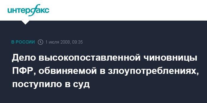 Дело высокопоставленной чиновницы ПФР, обвиняемой в злоупотреблениях, поступило в суд