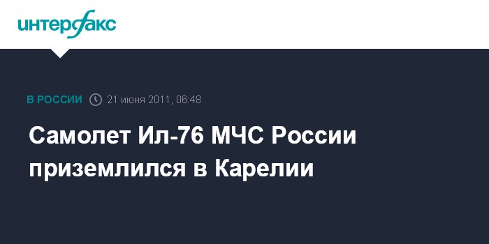 Петрозаводск. 21 июня. INTERFAX.RU - Самолет Ил-76 МЧС России с аэромобильными модулями на борту прибыл в Карелию, где потерпел крушение Ту-134, передает корреспондент "Интерфакса".