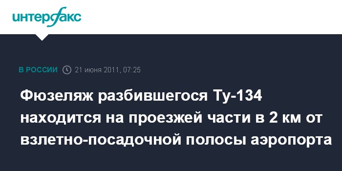 Фюзеляж разбившегося Ту-134 находится на проезжей части в 2 км от взлетно-посадочной полосы аэропорта