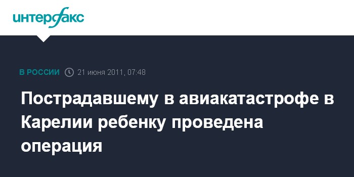 Москва. 21 июня. INTERFAX.RU - Ребенку, пострадавшему в катастрофе Ту-134 под Петрозаводском проведена операция, сообщил руководитель Всероссийского центра медицины катастроф "Защита" Минздрава РФ Сергей Гончаров.
