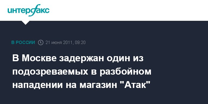 В Москве задержан один из подозреваемых в разбойном нападении на магазин "Атак"