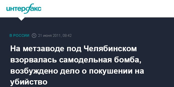 "Утром 20 июня 2011 года в листопрокатном цехе Ашинского металлургического комбината произошел взрыв самодельного взрывного радиоуправляемого устройства", - сообщает следственное управление СКР по Челябинской области.
