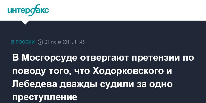 Москва. 21 июня. INTERFAX.RU - Члены кассационной коллегии Мосгорсуда, рассматривавшие жалобу адвокатов на второй приговор экс-главе НК "ЮКОС" Михаилу Ходорковскому и бывшему руководителю МФО "МЕНАТЕП" Платону Лебедеву, убеждены, что фигурантов не судили дважды за одно и то же деяние.