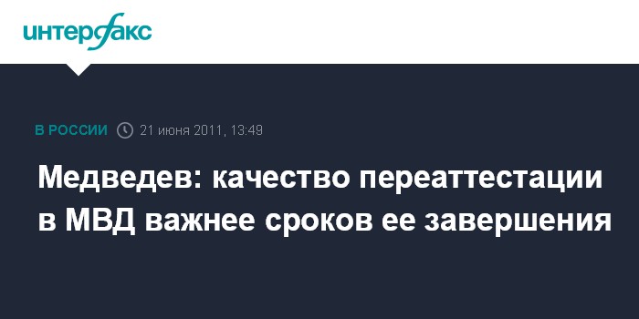 Горки. 21 июня. INTERFAX.RU - Президент РФ Дмитрий Медведев надеется, что переаттестация сотрудников органов внутренних дел будет завершена к 1 августа, но отмечает прежде всего важность качества этого мероприятия.
